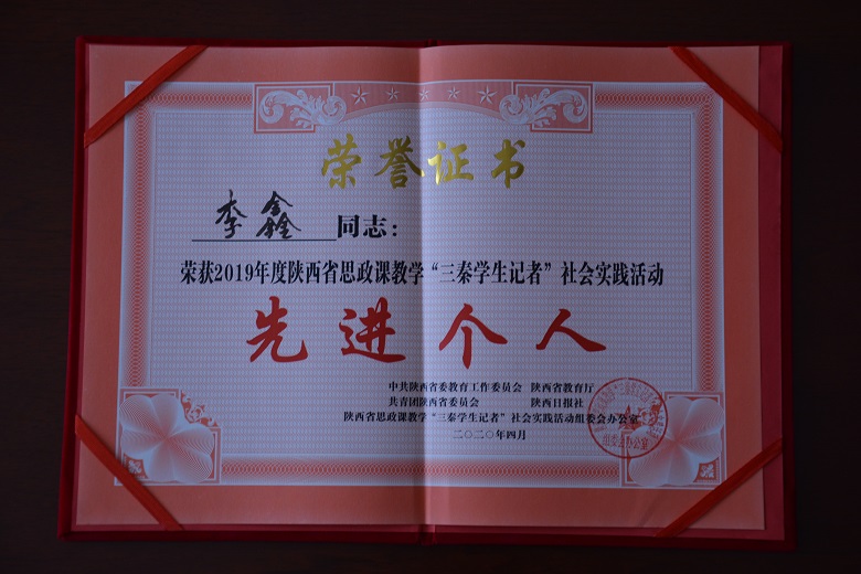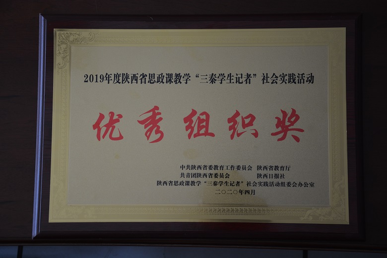 在陕西思政课教学“三秦学生记者”社会实践优秀成果交流会上,我校荣获陕西思政课教学“三秦学生记者”社会实践活动“优秀组织奖”,团委副书记李鑫荣获“先进个人”。
