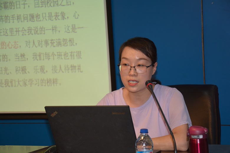 马云云副主任从以下几个方面对航校工作做了总结讲评。一、表扬了一批认真负责、工作一丝不苟的学生干部,号召大家向这些同学学习。二、针对手机问题再次提出了航校的要求。三、分年级对期中考试成绩进行了分析,分学科分析了各位次段人数、各科平均分等。表扬了在本次考试中成绩优秀的学生。鼓励成绩暂时落后的同学不气馁,要找准问题,对症下药,迎头赶上,号召大家不负韶华,努力前行;不忘初心,牢记空天理想。