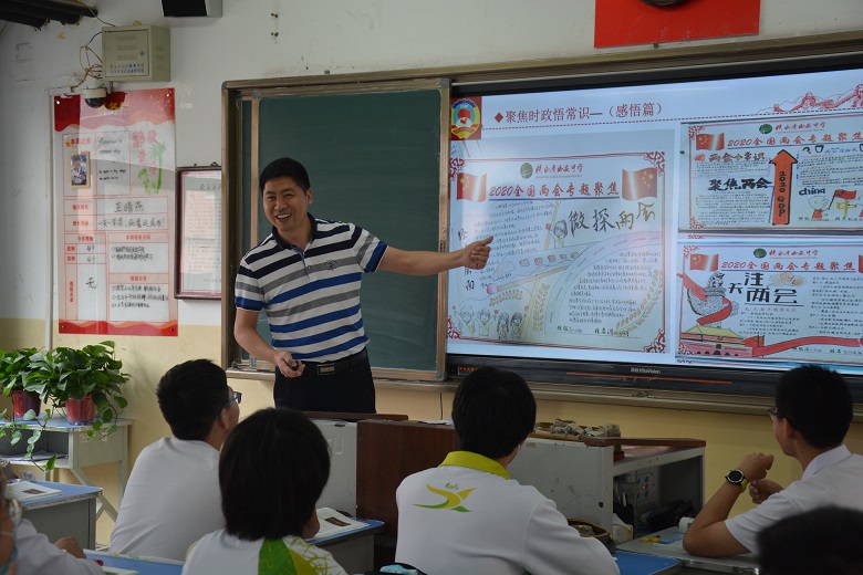 王海波副厅长一行走进思政课课堂,听取了张春锋老师教授的《中国人民政治协商会议》一节课。在听课过程中,王海波边听边记,细心观察教师授课、学生听课的全过程。课后,王海波副厅长一行实地查看了学校学生手绘的两会宣传展板,走进政治组办公室调研学科文化建设,与学科组老师亲切交流。