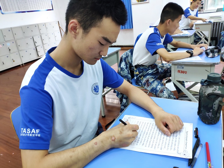 2020年6月12日,伴着黎明,和着煦风,西安中学空军青少年航空学校高一全体学生进行了一项英语书写大赛。其目的是为了鼓励及肯定同学们这段时间的坚持与努力。