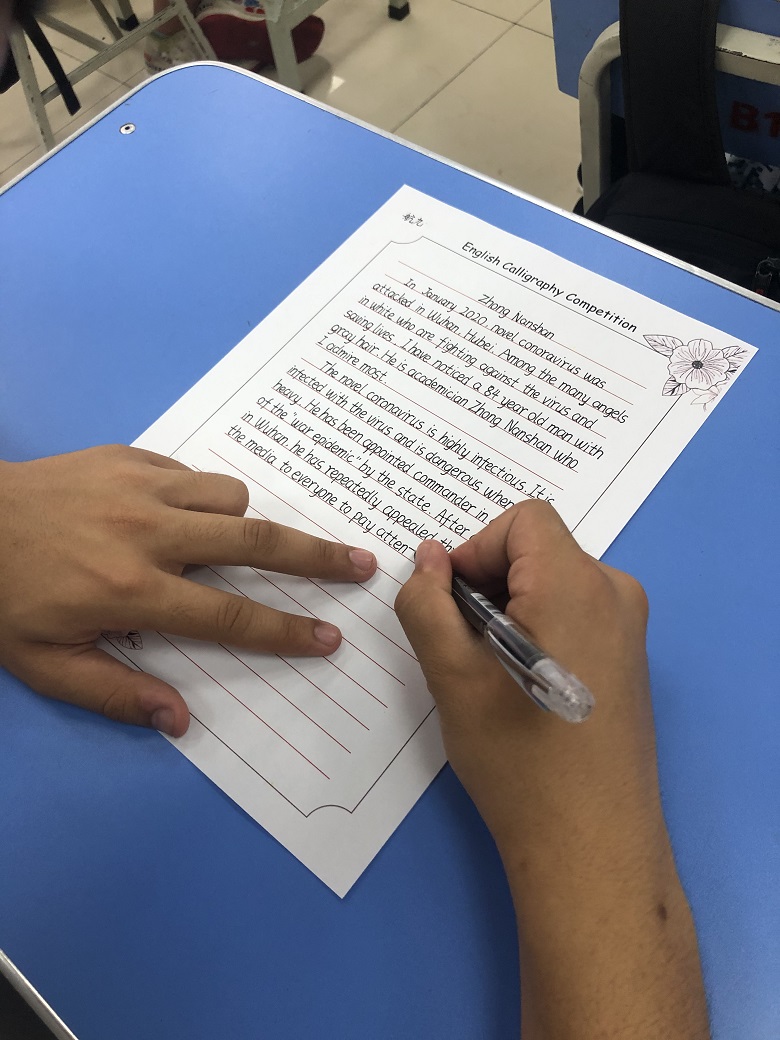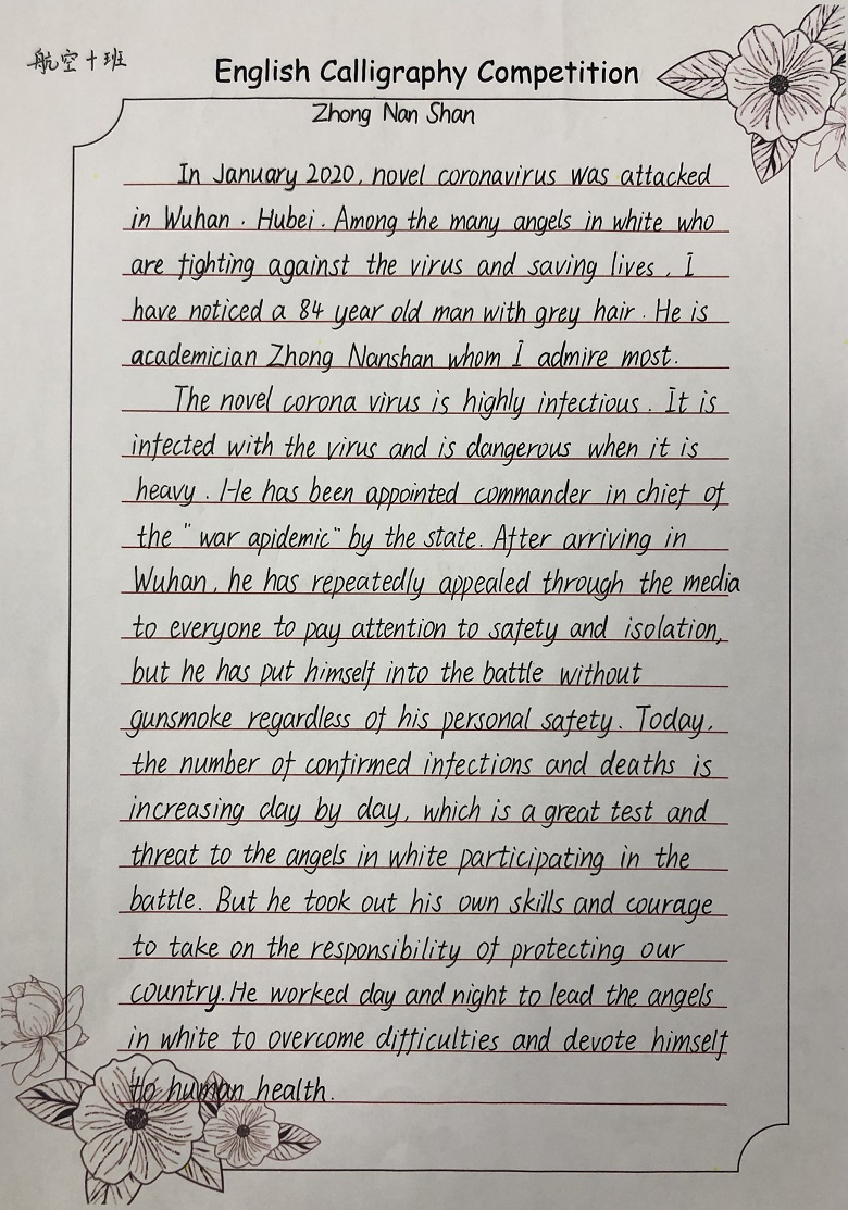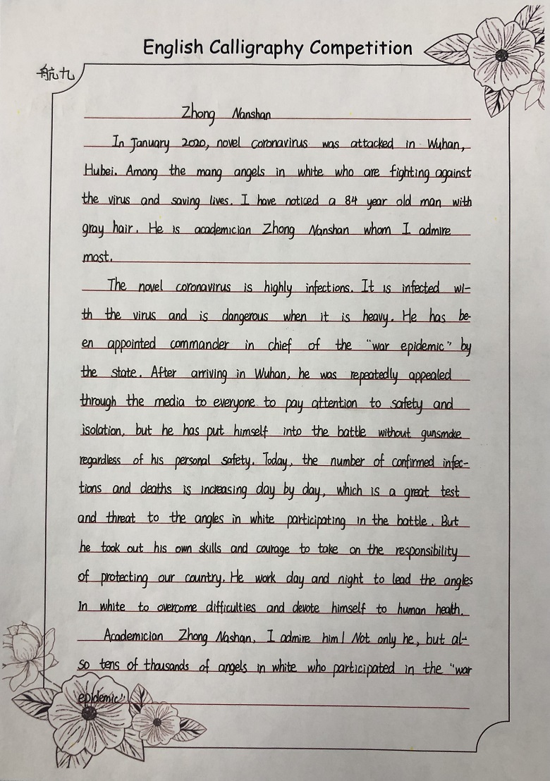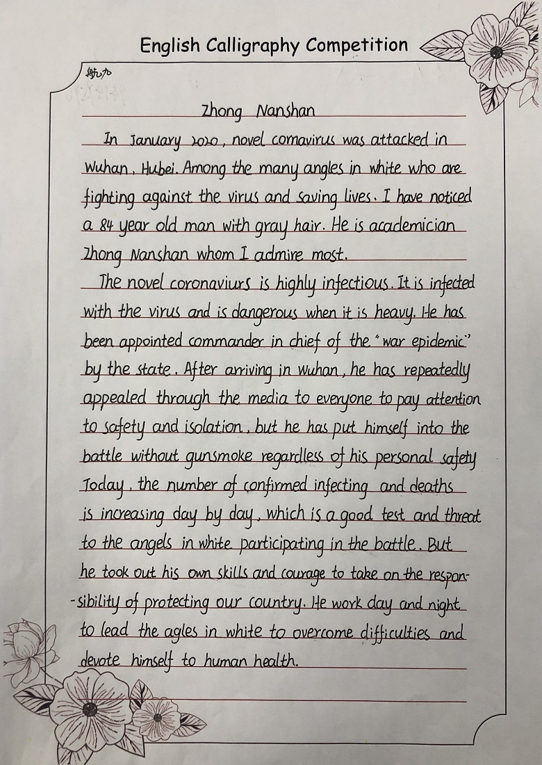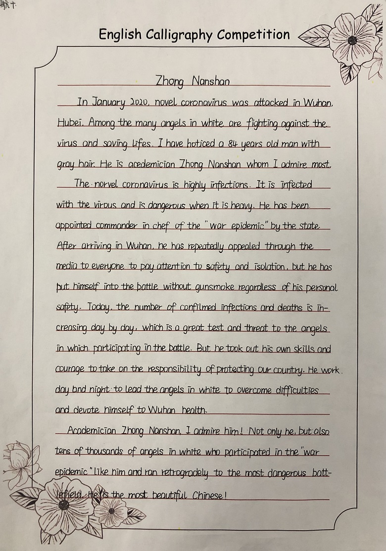 大赛于早上7:20正式开始,要求在规定的30分钟时间内用衡水体临摹一篇关于抗疫英雄“钟南山”院士的英语范文。