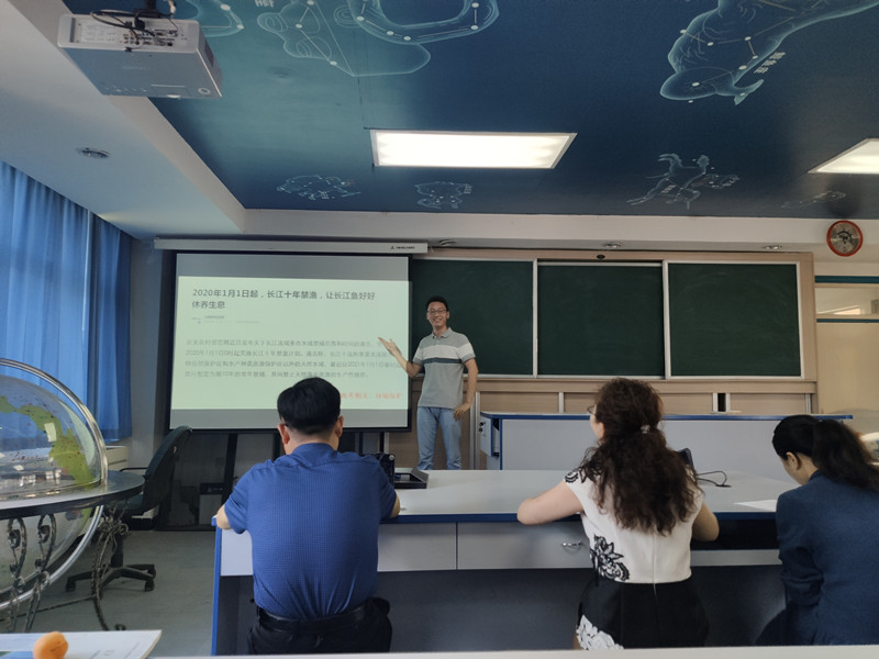 首先由高一年级老师进行分享,郭睿老师以今年初的长江“十年禁渔令”为素材,材料详实、逻辑紧密,对原因、影响分析与试题命题角度切合紧密。