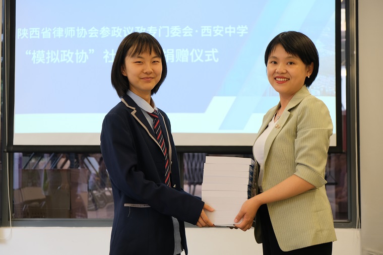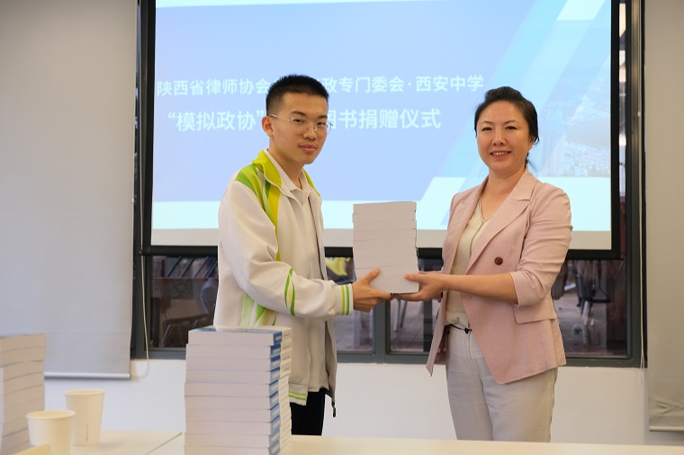 最后,张阳秋主任、宋欢秘书长代表陕西省律师协会参政议政委员会向社团捐赠了《2019陕西律师参政议政成果汇编》,该汇编来自陕西律师界的各级人大代表、政协委员于2019年度在各级两会上的议案及提案,非常具有学习及参考价值,希望能够激发同学们撰写提案的灵感,给大家提供参考和帮助。