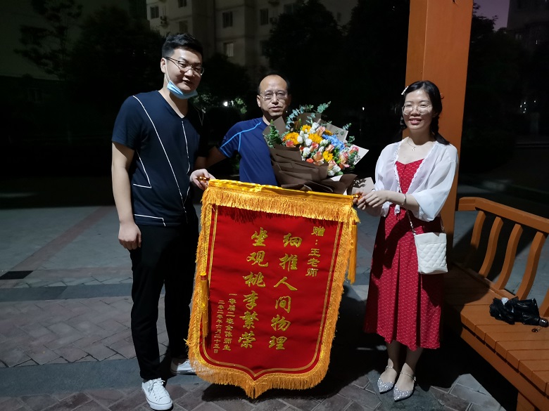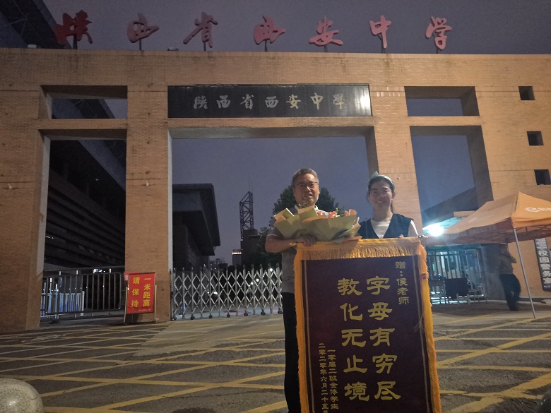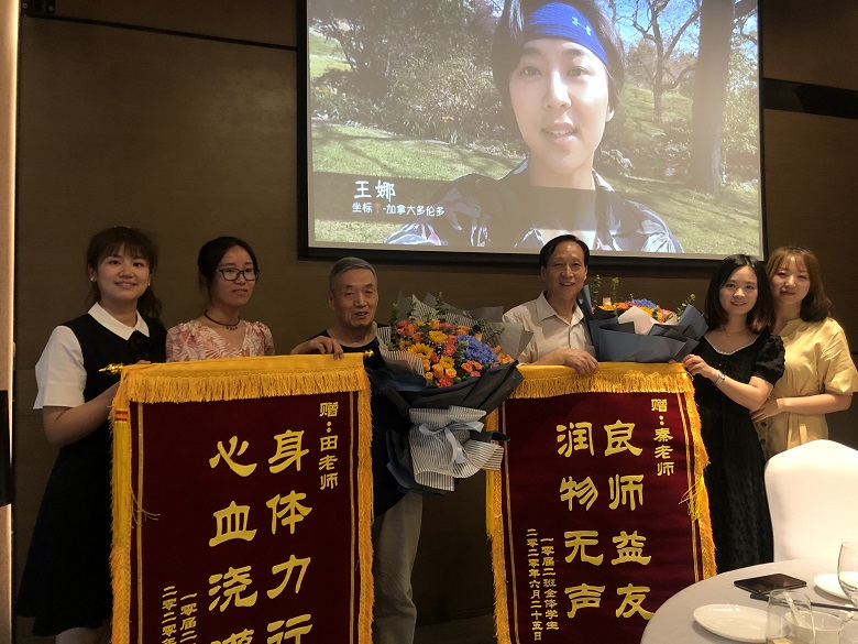 在胡珍妮、王烨两位同学的主持下,以西安地区为主的线下22位同学和线上20多位同学一起见证了一场“回味高中生活,追忆师生情意”的交流活动,首先是主持人带领同学一起回顾了高中三年陕西省西安中学给予的成长与收获,是学校为他们搭建了自主学习与创新的平台,各位老师给了他们自主发展的空间,在这十年中,他们虽然在不同的地方深造或工作,却始终铭记在西中的三年时光,感恩西中这片沃土对他们的养育,西中为他们成长为优秀人才奠定了基础。第二个环节是再听老师教诲,在筹备过程中组织的同学策划了再听老师教诲的环节,希望老师对已经或即将参加工作的同学一些建议,生物老师田西安以“退休追忆”为主题跟同学们分享了“难忘的2010届的日子”和“我退休返聘一年后追忆”。化学老师兼班主任秦才玉做了“身心健康利人利己”云班会演讲,秦老师的演讲以“做一名身心健康、乐观向上的人”、“做一名热爱自己工作岗位、喜欢自己事业的人”和“做一个对家庭、亲人和国家有责任担当的人”三个方面展开。第三个环节线上同学为老师送祝福,同学们提前录制了视频,一些海外的同学凌晨起来参加班会,并现场为学校和老师送祝福。第四环节,送锦旗,花束。孩子们真是有心,为准备参加聚会的语文老师左红莉、数学老师焦宇、英语老师侯西岐、物理老师王颖、生物老师田西安和化学老师、班主任秦才玉制作了锦旗和花束,由于端午节四位老师没能抽开身来到现场,同学们通过多种途径把锦旗和花束送到老师手中。