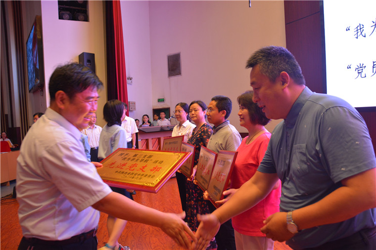 随后,党委副书记薛锋宣读了“关于授予刘卫等19名同志共产党员先锋示范岗的决定”、党委委员薛党鹏宣读了“关于表彰先进党支部和优秀共产党员的决定”、党委委员石峰虎宣读了“关于表彰‘我为学生导航’活动先进个人的、党委委员胡杰宣读了“关于表彰党员读书活动先进个人的决定”,学校领导为获奖的集体和个人颁奖。