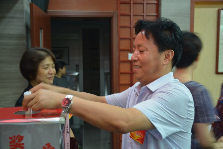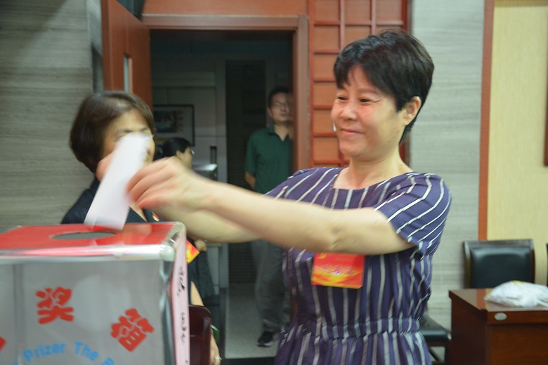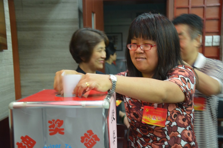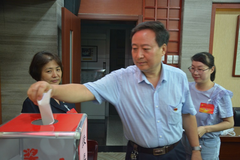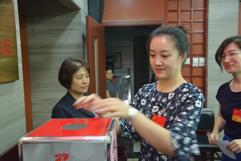 4点50分,在庄严的国歌声中,党员代表大会拉开帷幕,首先,党委书记张克强同志向大会宣读监票人、计票人名单,大会讨论并举手通过。接着,党委委员雷琪平同志向大会宣读了补选委员候选人名单,党员代表进行民主投票选举,产生了补选委员人选,由党委副书记薛锋同志宣读选举结果。