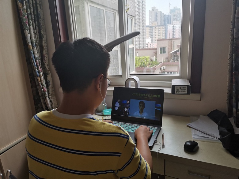 8月14日上午10:00,西安中学的10名优秀学子作为武汉大学分营营员,在带队老师黄江涛的组织下观看“云上科学营”开营仪式。本次云上科学营活动”由中国科协、教育部共同主办,以“虚拟大学城”的形式,通过直播、录播或分营自有的线上资源,采用云游大学校园、与名家大师面对面、参观重点实验室、参与线上科研实践等形式,让营员充分感受科技魅力和分营特色。