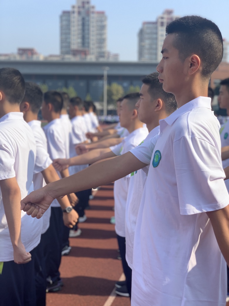 同学们渐入佳境,整队能做到“快、齐、静”,停止间转法、齐步走, “1、2、3、4”的口号声回荡在操场上,热情高涨。