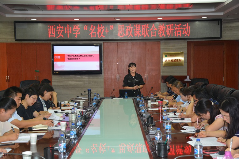 为深入学习贯彻习近平总书记在学校思想政治理论课教师座谈会上的重要讲话精神,落实王海波副厅长来校调研的指示要求,响应学校思政论坛号召,促进西安中学“名校+”教育联合体思政课教学质量提升,创新课堂教学方式,营造校庆教研氛围,将思政课课堂教学实践与新时代思政课理论探索有机结合,我校政治学科组联合经开一中、经开三中、泾河一中,于8号上午在西一楼会议室开展思政课教研活动。