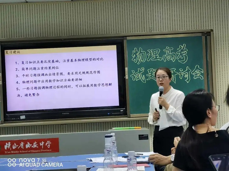 为总结分享高2020届物理组复习备考的有效经验,帮助高三教师有效了解高考新变化,准确把握2020年高考命题特点,合理安排复习策略,制定科学高效的备考方案,9月16日我校物理组联合“名校+”其他三所学校进行了高考试题研讨活动。西安中学、经开一中、泾河一中全体物理教师及经开三中、丹凤中学部分教师代表参会,活动由西安中学物理学科组组长蒲强老师主持,我校教科研室樊兰君副主任、经开三中教研室张旭日主任全程参加会议并做指导。