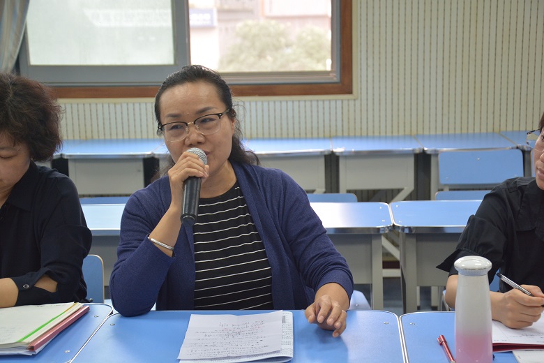 在这七位老师分享的间隙,还分别穿插了教学处副主任杨毅老师、鱼云霞老师、张莉老师的点评,同时也表达了自己对高考教研的观点。其中杨毅老师基于自己多年对优等生的教学经验,建议老师们注重物理经典问题的练习以及对优等生在优选方法能力的培养;鱼云霞老师强调我们的高中物理教学一定要重视学生思维方式及分析处理问题能力的培养;张莉老师指出选修模块应该要回归课本,控制好复习的深度和广度。