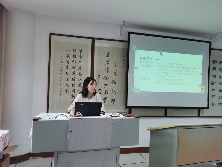 随后,原雪老师向社员同学们介绍了《二月》杂志的栏目设置、投稿要求、社团活动的相关情况以及本学期的社团工作计划。