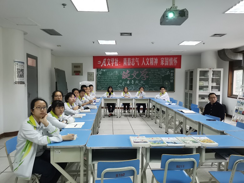 9月27日下午三节课后,“二月”文学社活动室里坐满了新社员。高一、高二两个年级的十六位社员同学在这次纳新仪式上,正式成为了“二月”文学社的成员。语文学科副组长尚武老师,文学社指导老师原雪、樊佳玥、屈锋共四位老师参与了纳新仪式。