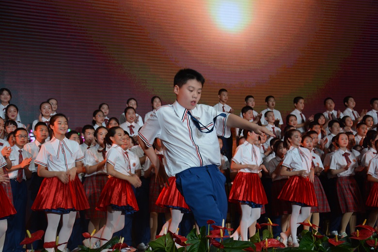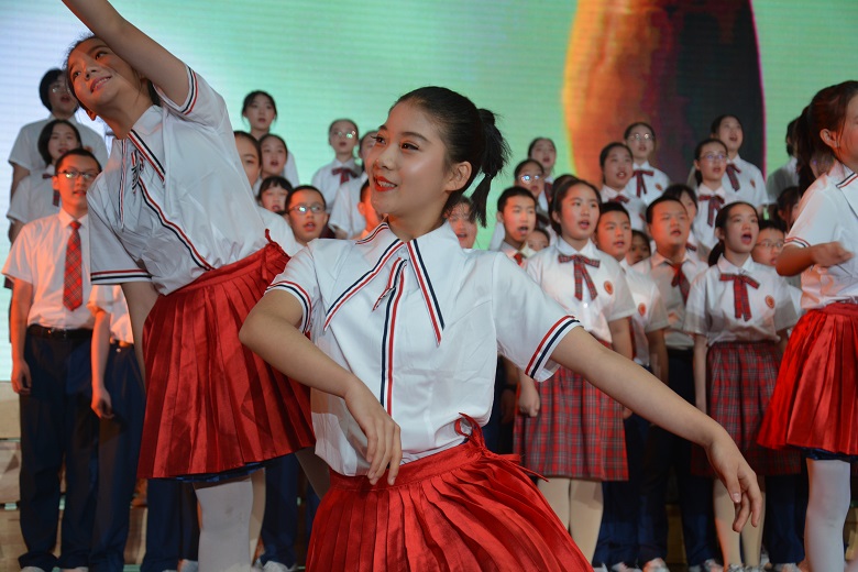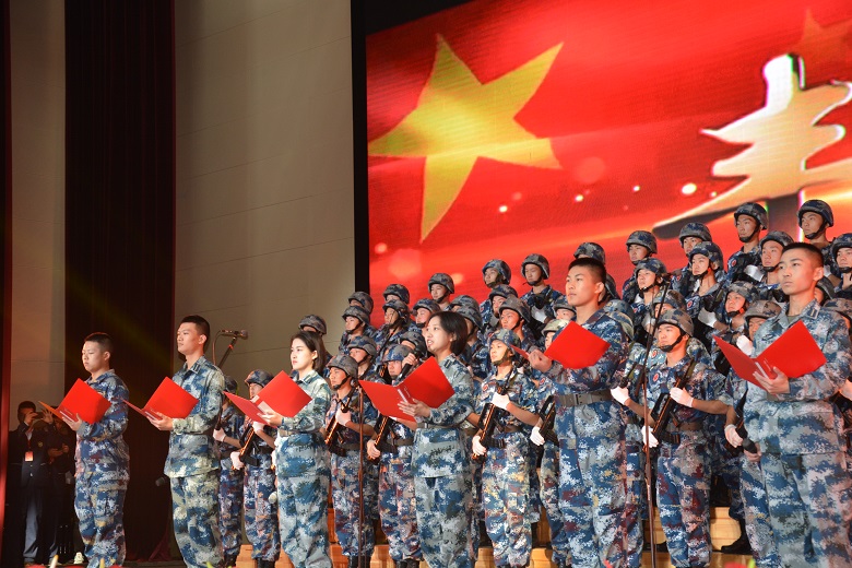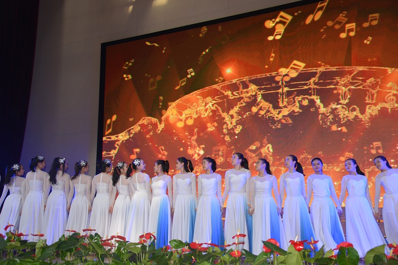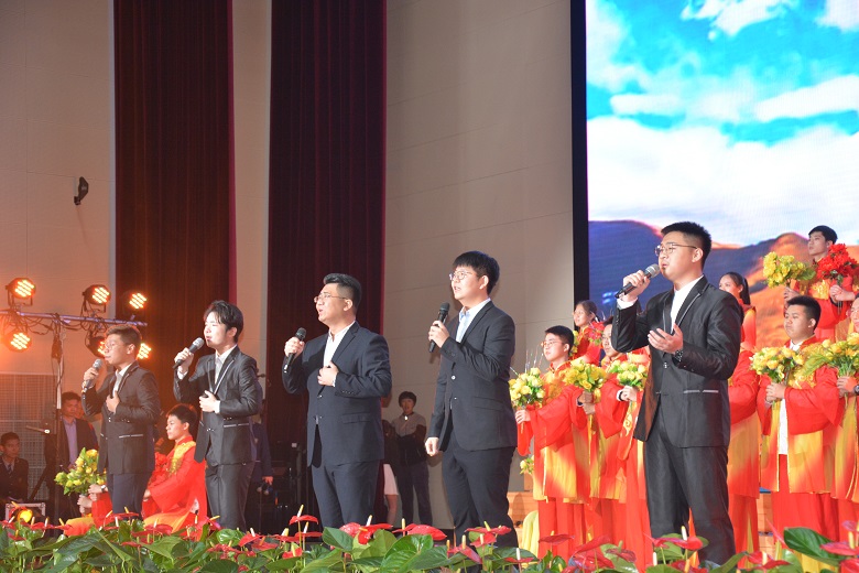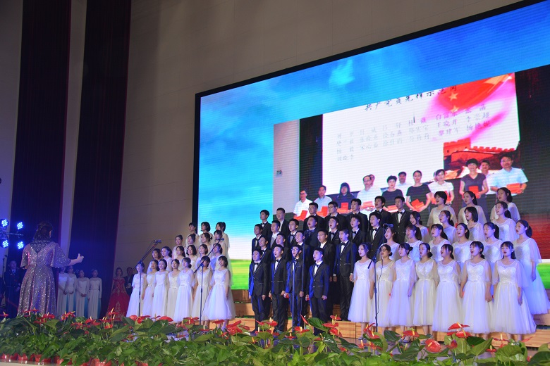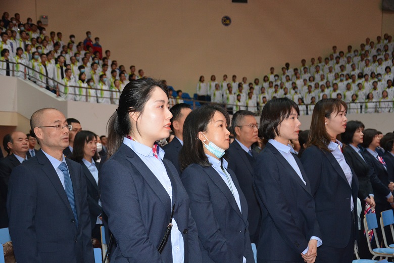 庆典第一项,奏唱国歌。庆典现场,歌声嘹亮,肃穆庄严。