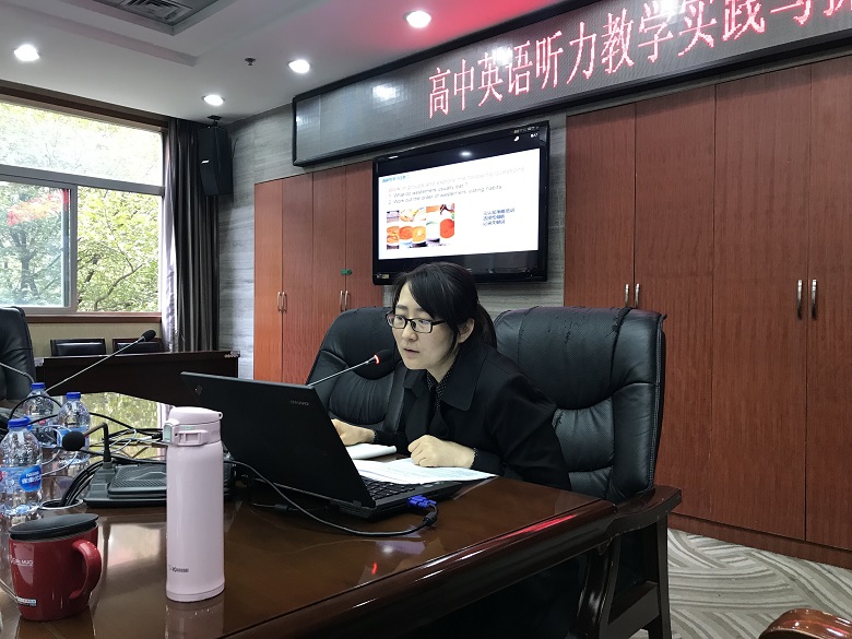 美国著名的语言教育家克拉申曾说过,“无论是儿童还是成年人,在学习和运用语言的过程中,头等重要的事情就是听力理解。只有当学生的听力能力得以发展时,他们才能对其表达充满自信”,由此可见“听”的能力在语言学习中的重要性。继英语组景晶老师的“产出导向法指导下的高中读写教学”报告之后,英语组高一,高二全体教师于在西一楼会议室共同聆听郭玮老师精心准备的“产出导向法指导下的高中英语听说教学”学术报告,英语组教研组长代庆云老师主持报告。