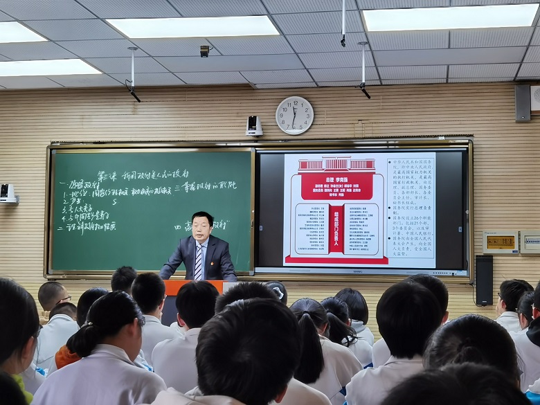 田建军老师采用“逆向教学设计”的全新思路,先展示知识结论,通过抛出一系列环环相扣的问题,引导学生思考。整节课围绕感悟政府、理解政府、掌握政府的职能和高考中的政府四个方面展开,结合高新一中实际和时政热点,调动了学生的参与度,增强了课堂的实效性,得到了大家的一致好评。