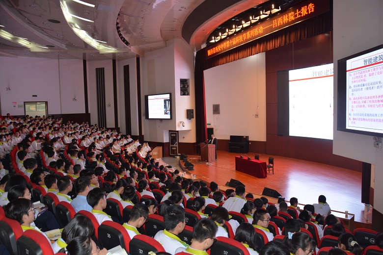 讲座中,吕院士为大家介绍了土木建筑工程中的高新技术,从智能建筑、绿色节能建筑与预制装配式工程,智能材料与智能结构,重大工程的安全性监控,GPS与GIS技术的应用和开发到高铁建设中土木工程的支撑技术,吕院士所讲内容覆盖面极广。他生动而严谨的表达使在场同学了解了新技术、新成果在建筑行业中的应用情况。讲座过程中,吕西林院士丰富渊博的知识、深入浅出的讲解、图文并茂的内容,获得了同学们的掌声和好评。