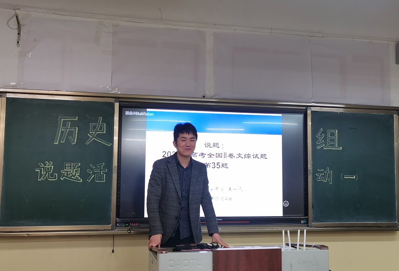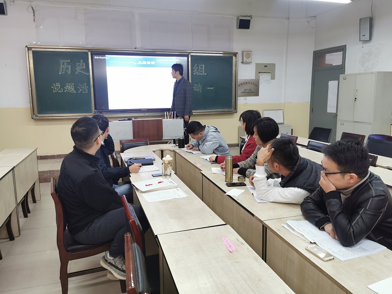 新高考、新课程的改革背景下,为不断提高历史教研组教师们的业务能力,加强本学科组教师对试题的研究,促进教师的专业化成长,继教师说课、微课、听、评课等常规教研活动之后,历史组举行了以“命题指方向,说题促思考”为主题的“说题”系列教研活动。自上一学年学科组长王理老师的系统介绍和郭蕾老师充当先锋之后,本学期由王一凡老师打头阵继续开展说题活动。11月4日,历史组于高二集体备课室,对2020年全国二卷35题析毫剖厘,悠哉乐哉快哉!