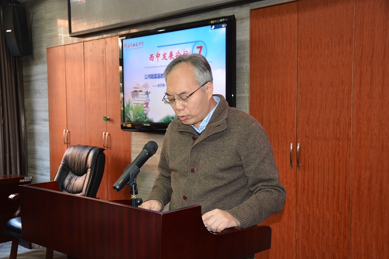为进一步提升我校教师的整体素质,打造学习型教师团队,以形成“全员阅读,广泛阅读,坚持阅读,幸福阅读”的良好读书学习氛围。11月6日上午,主题为“以书籍奠基教育人生,用书香浸润生命成长”的西中发展论坛第七期在校西一楼会议室如期举行。本期论坛由薛党鹏副校长主持,行政会全体成员参加,学校教研管理层面代表郭富斌主任、教学管理层面刘卫副主任、年级部管理层面左宏莉主任和行政管理层面黎建军副主任依次上台发言。