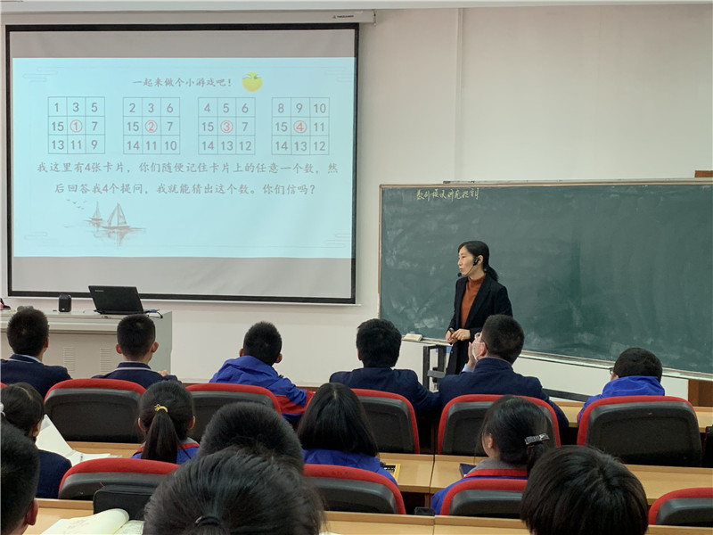 陈晓曙老师在“数列模块研究性学习”创新课上,从两个有趣的数学游戏出发引入“二进制”这一研究主线,然后设计了“二进制运算”“二进制转十进制”“十进制转二进制”“猜数字”四个研究性活动,通过同桌合作交流、上台演算展示等学习方式,提供给学生自主的活动空间和交流的机会,引领学生通过自己的探索来获取“二进制”知识,最后结合数列知识进行升华。整个课堂中陈老师营造宽松、和谐的学习环境,引导学生积极参与学习过程;重视师生、生生间的互动交流,注重学生的想法,让学生经历动手操作,验证探究过程;最终将简单问题的研究方法迁移到复杂问题,归纳结论,积累数学活动经验。