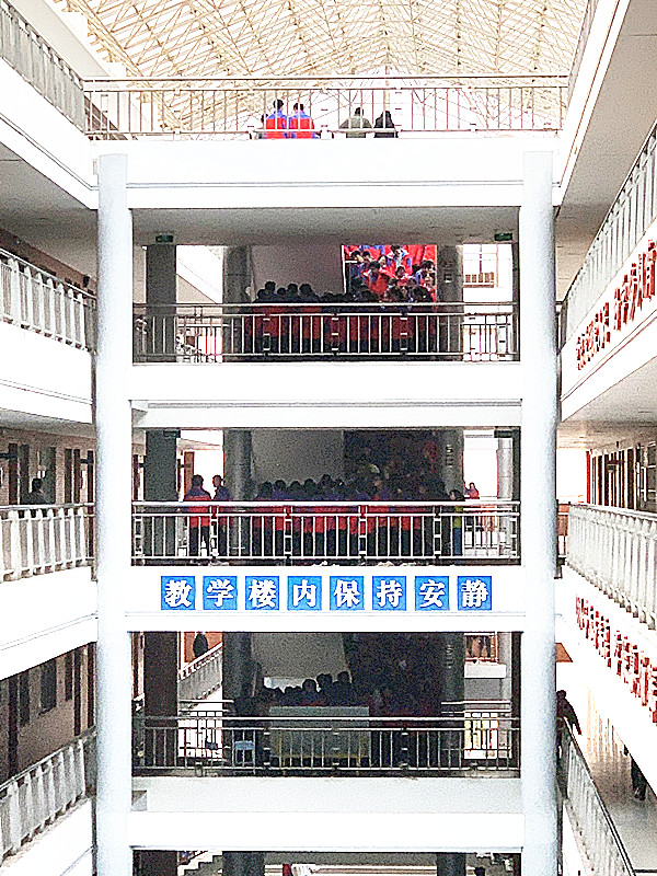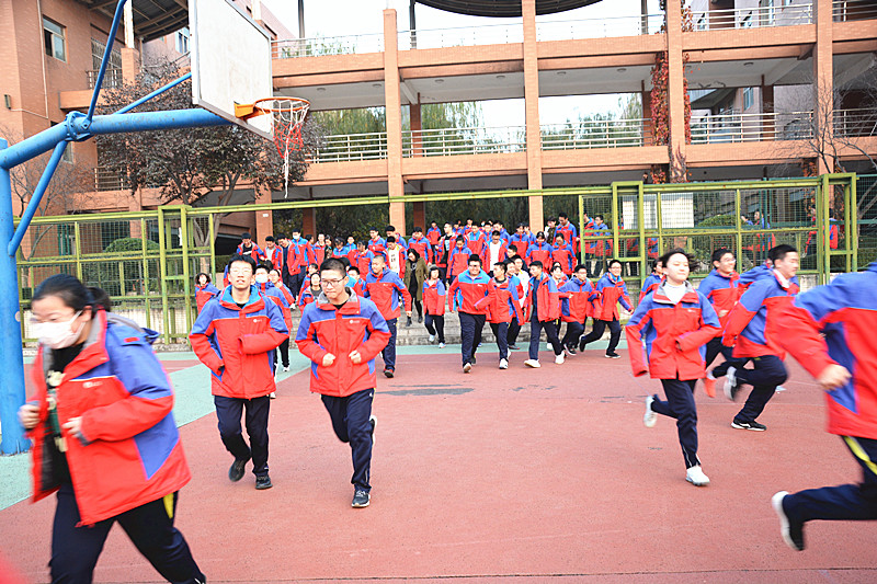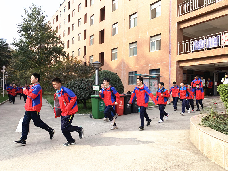 ——宿舍楼紧急疏散演练 作为一所寄宿制学校,我校对宿舍安全问题始终常抓不懈。下午1:50,领导小组成员、各班班主任、工作人员、宿管老师准时到达各自岗位。2:00,宿舍楼内哨声响起,在领导小组成员的统一组织下,各宿舍楼内所有学生迅速有序地撤离,到达指定的安全区域。此次宿舍楼紧急疏散演练共用时3分25秒,安全撤离师生近3000余人。