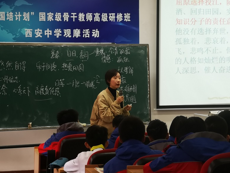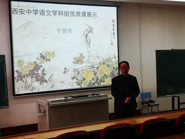 11月9日上午,由教科研室组织,语文学科组承办的高中语文优质课观摩研讨活动在图书馆二楼阶梯教室顺利举办,来自西安中学、经开一中、经开三中、泾河一中的众多语文老师前来观摩学习。高二语文组的辛慧秀老师精心准备,认真打磨,展示了一堂别开生动、精彩纷呈的语文课。