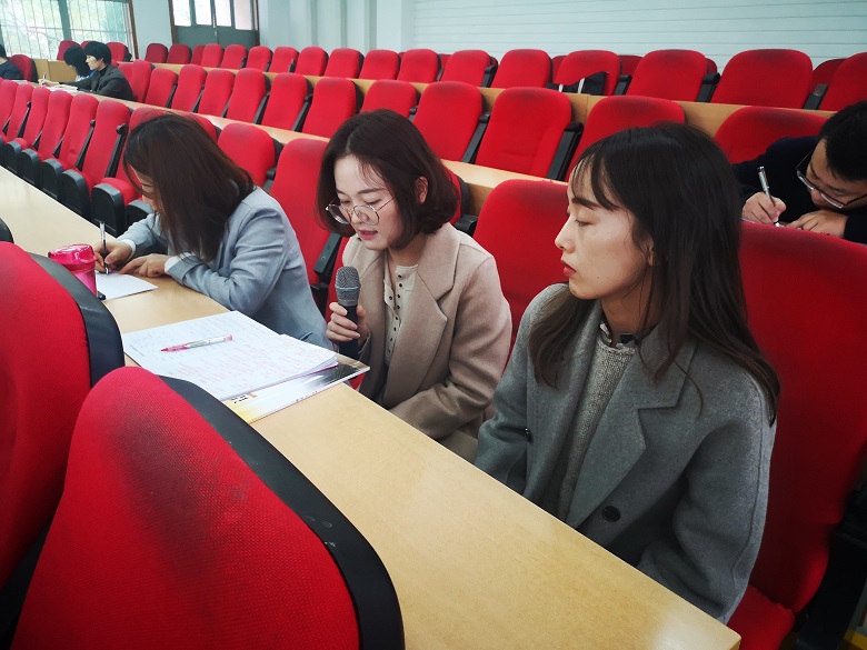 泾河一中教师代表王琼老师点评辛老师的课堂教学目标明确,完成度较高。但是在学生回答问题时,老师要注意及时回应并表示肯定。