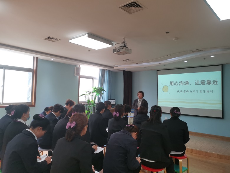 为进一步深化精细管理,提高学生宿舍管理队伍素质,帮助宿管老师与学生建立良好关系,为学生创造良好的生活环境。11月11日下午,我校召开了主题为“用心沟通,让爱靠近”的宿管老师培训会。全校宿管老师参加了此次培训。