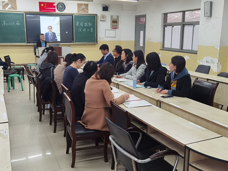 为了使高一新生更好地完成初高中衔接,丰富同学们的课余生活,加强英语学习和交流,提高高一学生学习英语的积极性,高一英语组决定举办高一英语视频演讲大赛。11月17日上午,高一英语备课组全体老师在集体备课室开展了高一英语视频演讲大赛年级总决赛评分工作。此次视频演讲大赛以“My New Idol”为题,要求学生录制一段三分钟左右的演讲视频讲述自己心中的新偶像。大赛分为两轮进行,各班先以班级为单位开展第一轮选拔,每班选出一人参与第二轮的年级总决赛,最后共有27名学生入选二轮总决赛。