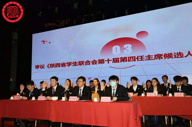 最后,会议审议并通过了《关于落实陕西省学生联合会对陕西各级学联学生会组织指导管理的若干规定》《陕西省学生联合会考核、奖励、责任追究制度》。选举西北工业大学研究生会执行主席丁镜学同学为陕西省学生联合会第十届第四任主席。