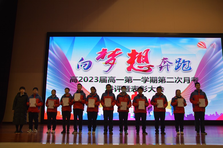 12月19日下午,高一年级在体育馆举行了高2023届高一第一学期第二次月考讲评暨表彰大会,左宏莉主任代表年级对优秀学生进行了表彰奖励,年级部付斌副主任和杜薇副主任分别就德育和学习情况进行总结。