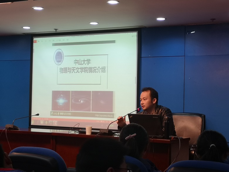 由中山大学主持的“天琴计划”是我国引力波研究的重要科研计划,中山大学的学者们本着家国情怀、科研热情矢志不渝进行科学研究。中山大学是教育部直属的综合性重点大学,国家“985工程”、“211工程”建设高校,有着一百多年办学传统,是学术与文化中国南方重镇和人才培养南方高地。易教授对中山大学物理与天文学院的学科研究历史、科研实力和办学情况做了简要介绍,使同学们体会到为祖国争光,为科学奉献的伟大与自豪。
