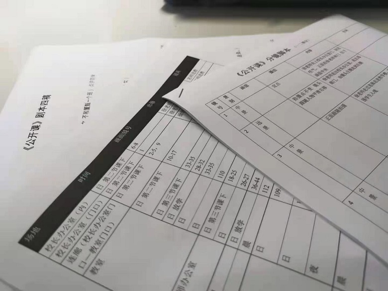 本次我校微电影《公开课》的启动是在2020年6月。在教学处大力支持下,语文学科组组尚武、朱妮娅、原雪三位老师商讨陕西省中小学生微电影大赛的参赛事宜,提出了“认真制作、力争获奖”的要求。接到任务的三位老师立即着手组织创作、拍摄和后期团队,并于7月份正式建组,投入紧张而繁忙的工作。