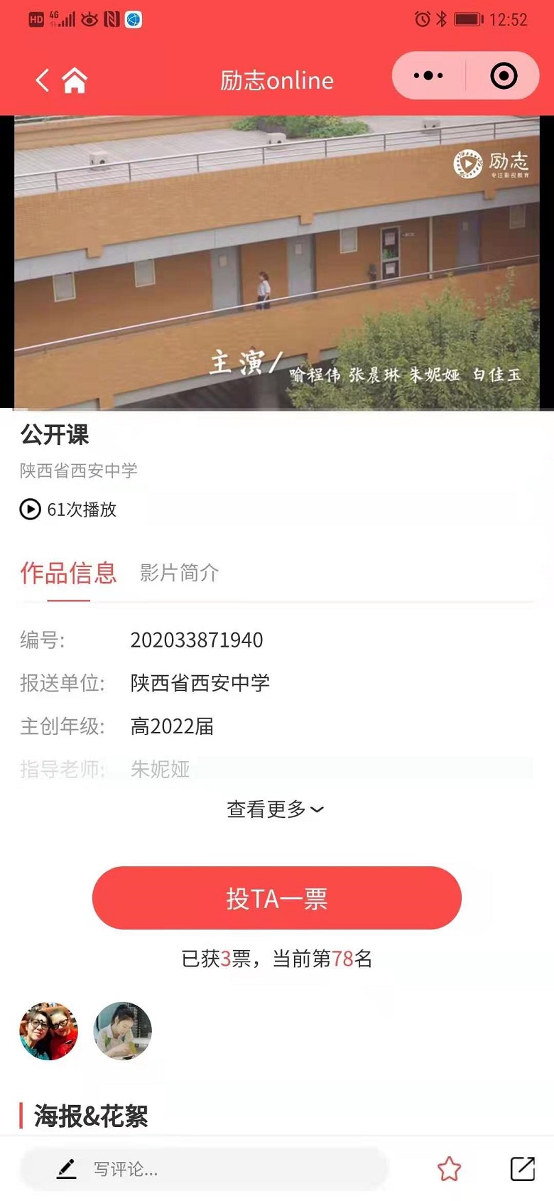 陕西省西安中学微电影作品《公开课》演职人员表: