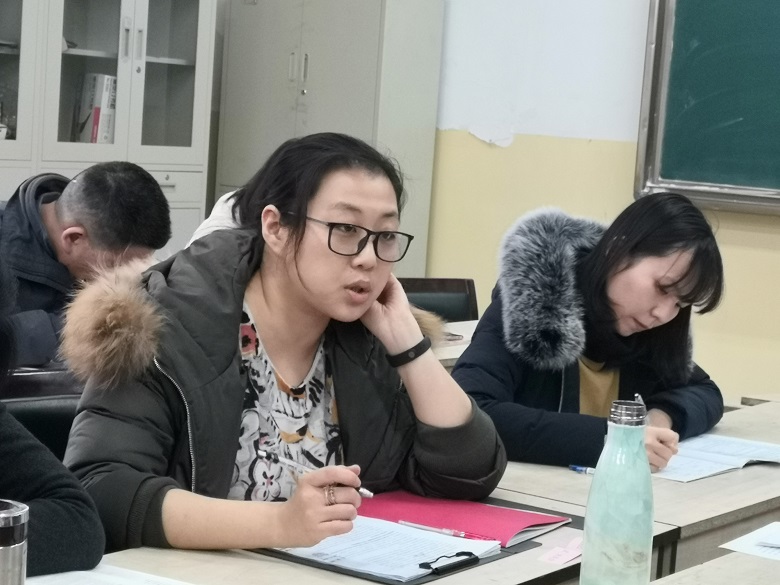 苟莉莉老师结合本学期学科组内开展的公开课,总结了如何在教学中发挥学生的主体作用,具体有:(1)挖掘课程的知识要求和逻辑要求。(2)情境化的教学设计能引发深度思考。(3)科学化的教学评价能厚植学生素养。