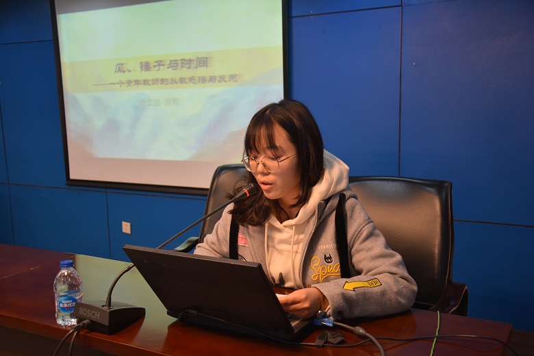 原雪老师以《风、锤子与时间——一个青年教师的从教感悟与反思》为题,围绕“教师应该如何应对时代之风”“教师应该如何打破认知框架”以及“教师应该如何在把握时间中获取自我认同”三个话题展开发言,并用生动的案例和精恰的名言佐证自己的思考,给在场的青年教师留下了深刻的印象。