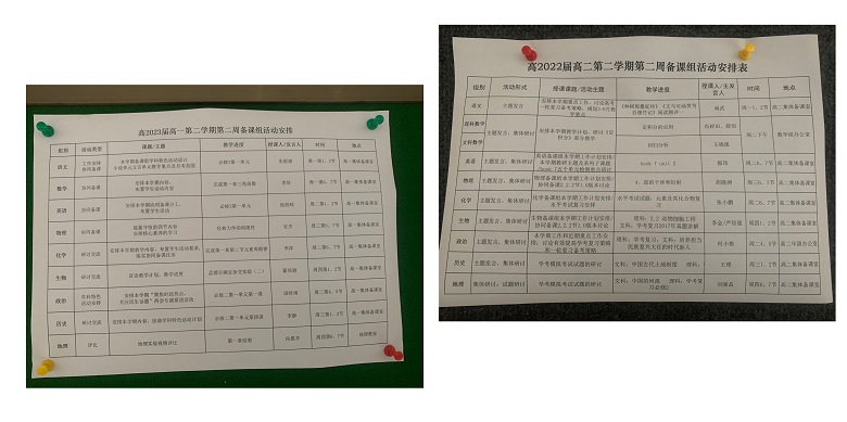 此外,高一、高二年级将备课组教研活动进行公示,以接受师生的监督。