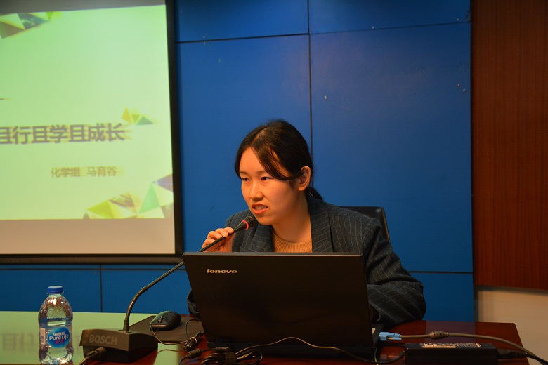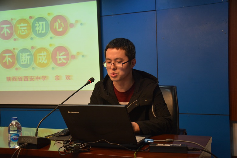 余欢老师以《不忘初心,不断前行》为题,从教师的成长阶段、教师成长的必备要素、保持教师的从教初心三方面展示了自己的成长经历,分享了自己的心得体会,展现了自己的教育情怀。