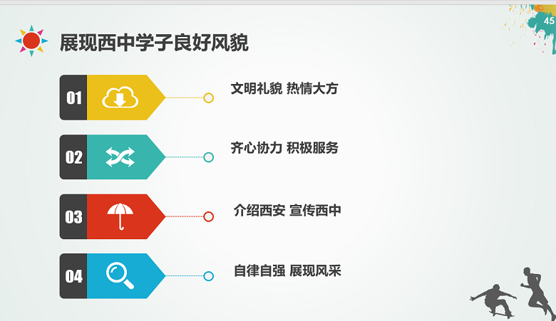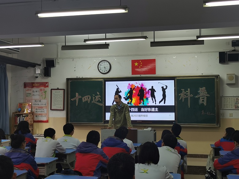 为培养和提高西中学子的社会责任感, 4月2日下午班会时间,高2023届各班在年级部的精心准备和安排下,以“喜迎十四运,当好东道主”为主题召开班会,普及“十四运”知识、传播“十四运”精神、营造“十四运”氛围。