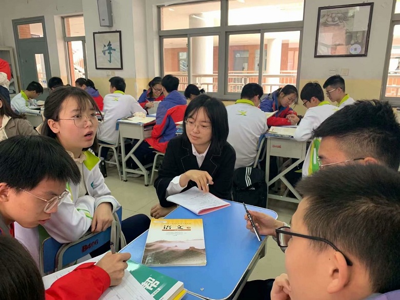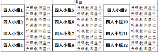 将学生编排为四人小组,并专门给走道留出足够的空间让听课老师就座,保证每个小组配有一名听课老师。