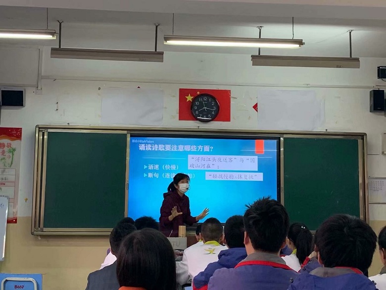 为了进一步提高语文组教师听课质量,探索新型听课模式,2021年4月7日上午,高2023届语文备课组向全年级老师呈现了一堂别开生面的公开课。教学处吕铎主任、2023届年级刘卫主任、杜薇副主任、学生处敖宏铭副主任,2023届语文备课组全体教师及部分其他学科教师前来听课。