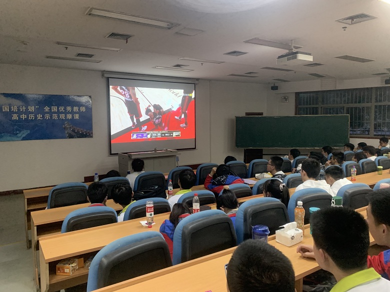 4月9日晚18:50我校共举办了四场体育电影和经典赛事的观影活动。在讲述中国女排顽强拼搏、为国争光的影片《夺冠》中,同学们为中国女排永不言弃的精神所感动,民族自豪感和爱国主义情绪得到了极大的激励;在讲述苏联篮球队凭借顽强不屈毅力打败保持36年全胜记录美国队的电影《绝杀慕尼黑》中,同学们备受鼓舞,热血沸腾。