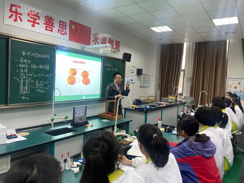 本次活动的第一个环节是西安市经开第一中学的杨杰老师和西安外国语大学附属学校的吴明老师以必修2第二章第2节《化学能与电能》为题展开同课异构。