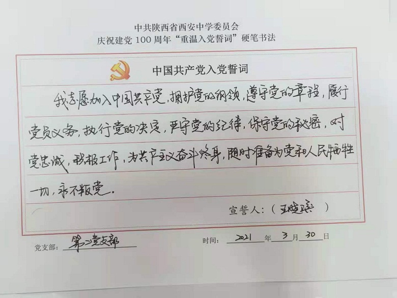校党委组织开展重温入党誓词硬笔书法活动