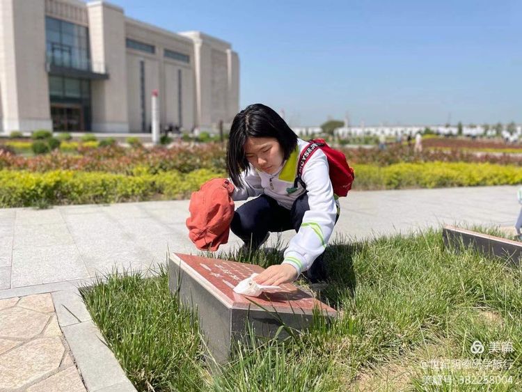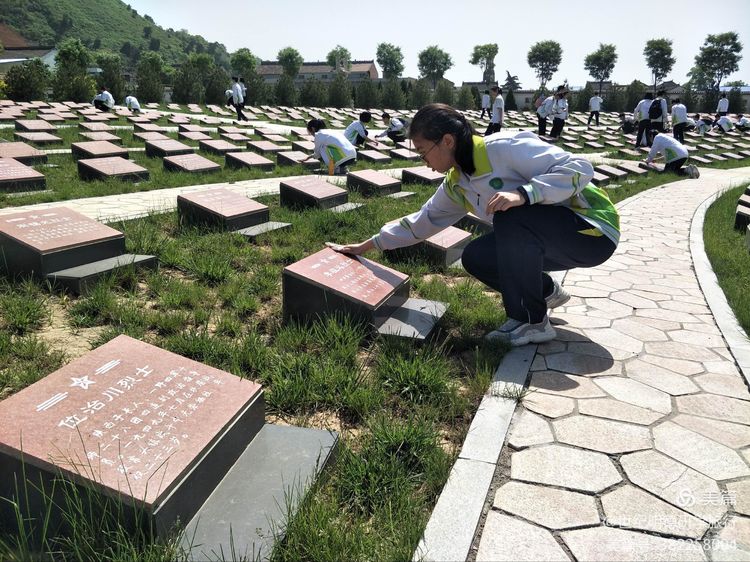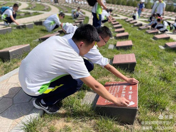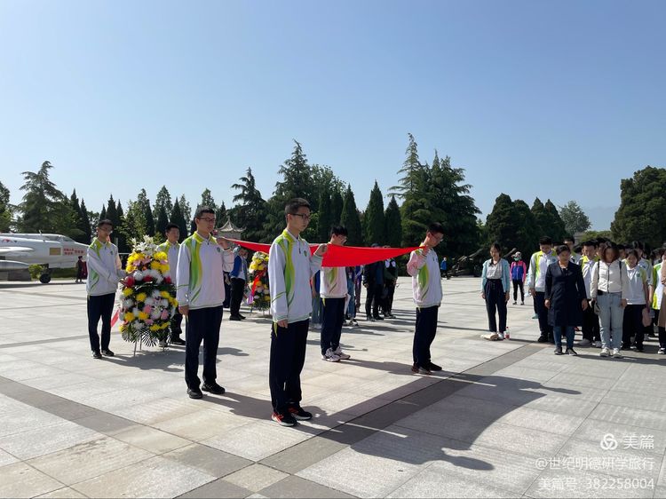 上午,历经一个半小时的车程,同学们来到了扶眉战役纪念馆,在烈士纪念碑前举行了公祭活动。同学们怀着无比崇敬的心情整齐列队,在四位护卫队同学的护送下,鲜艳的党旗在五月的阳光之下显得格外的明媚。伴着《献花曲》的庄严节奏,两位同学迈着整齐的步伐抬着花篮缓缓向烈士纪念碑走去,向革命烈士敬献花篮,花篮的挽联上赫然写着“扶眉战役烈士永垂不朽。”学生代表领诵《少年中国说》,同学们铿锵有力的诵读声在纪念碑广场声声回荡,一字一句,掷地有声。以这样的形式,祭奠烈士的英灵,寄托他们的哀思,继承革命遗志,表达发扬革命传统的坚定决心!公祭仪式结束后,同学们进行扫墓活动并参观纪念馆。