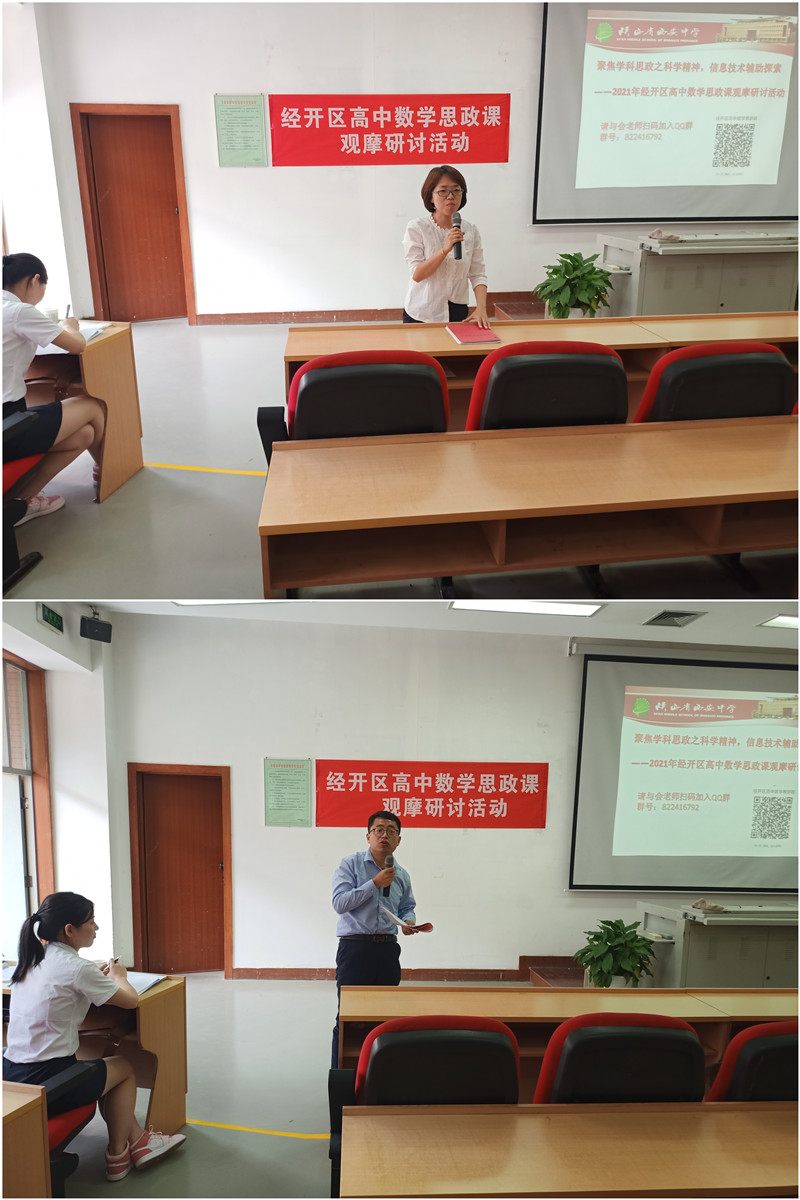 秉承着习近平总书记要把“立德树人”教育观念融入各学科教育的主旨,5月10日下午,西安中学举办了经开区“高中数学思政课研讨观摩活动。西安中学、经开区属各高中及泾河一中的数学教师们参会。西安中学张克强校长也莅临活动现场参与听评课。