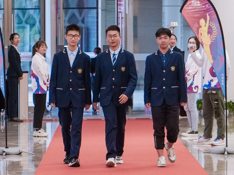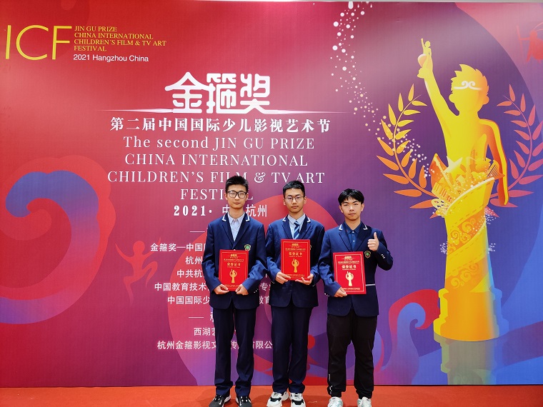 5月4日,我校高二年级文四班胥星帆、文一班许智航、文二班巩博涵在许冬老师的带领下前往浙江省杭州市西湖文体中心出席中国国际少儿影视艺术节红毯活动及环球盛典颁奖典礼。三位同学凭借微电影作品《公开课》分别获得最佳导演奖、最佳摄像奖,最佳剪辑奖。