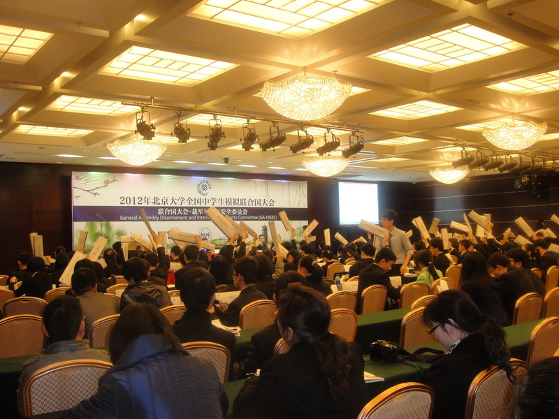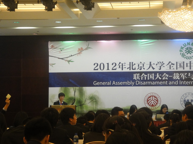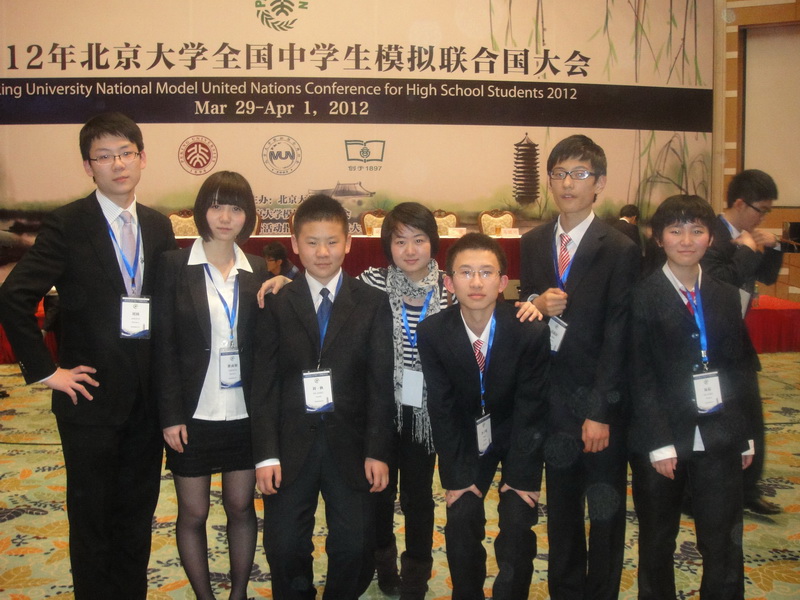 2012年3月29日至4月1日,我校模拟联合国代表团在余馨老师带领下,赴北京参加了2012年北京大学全国中学生模拟联合国大会。北京大学模联大会是目前国内规模最大、学术水平最高的中学生模拟联合国会议之一。学校、高一年级部的领导以及英语组长都对此次活动给予了高度重视与大力支持。