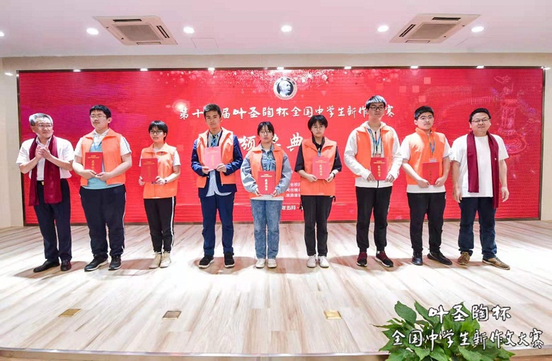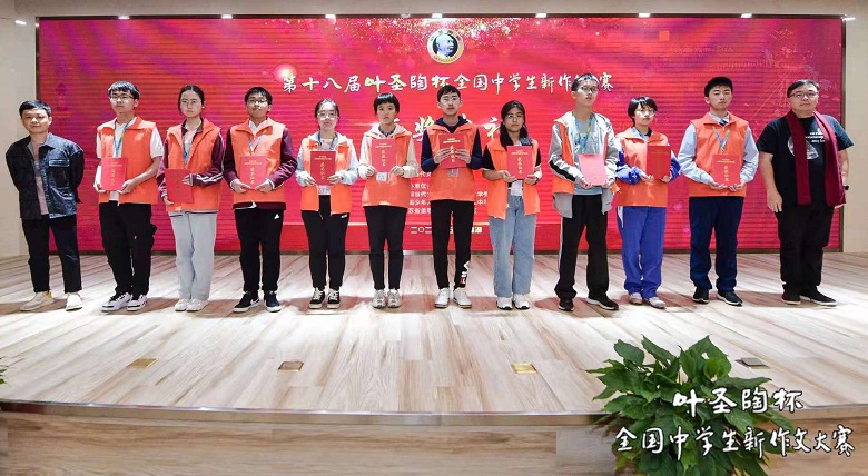 5月16日,第十八届叶圣陶杯全国中学生新作文大赛颁奖典礼在江苏泰州举行,我校语文学科副组长尚武老师及四位同学受邀出席。经过高规格的评审团队严格公正的评选,我校高2023届韩无为同学荣获全国一等奖,高2022届王宇航同学、高2023届孙晟吉同学荣获全国二等奖,高2022届王含玉同学荣获全国三等奖,学校荣获优秀团体奖。以上奖项是学校连续十年来参加此项全国作文大赛的最好成绩。