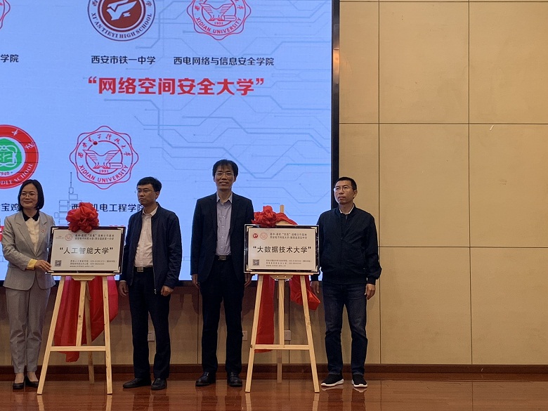 签约仪式上,我校副校长薛党鹏与西安电子科技大学计算机科学与技术学院副院长万波签署了共建“双高”特色“大学”协议,共同为西电·西安中学“大数据技术大学”揭牌。
